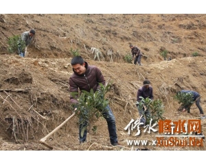 3月4日,溪口镇陈坊村村民正在荒山上栽种枇杷树。新年刚过,溪口镇组织全镇村民开展春节植树造林活动,全镇已完成600亩荒山造林...