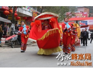 3月4日,溪口镇在集镇开展庆元宵文艺演出,图为村民正在演出节目。...
