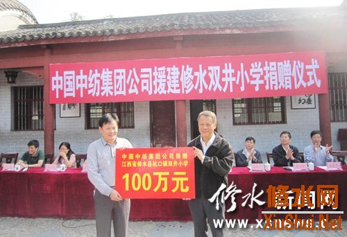 修水网 www.xiushui.Net 金秋十月,秋高气爽。10月9日,中国中纺集团公司援建我县杭口镇双井小学捐赠仪式在双井村高峰书院举行。中国中纺集团董事长、党组书记赵博雅,省扶贫和移民办党组成员、副主任饶振华,市扶贫和移民办党组书记、主任孙丽敏,县委副书记、县长张林,以及县政府副县长周杏连出席。张林宣布双井中纺希望小学动工。 HULING