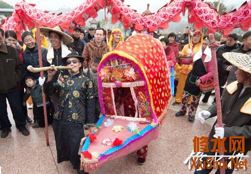 省非物质文化遗产——“一圣仙娘花灯”表演吸引游人。 本文来自修水网