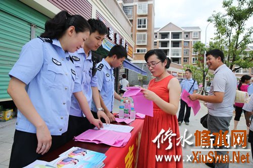 xiushui.Net 内容来自xiushui.Net 6月26日是第28个国际禁毒日。当天,县公安局在全县各地开展形式多样的禁毒宣传活动。通过摆设咨询台、开展知识讲座、悬挂横幅、展示禁毒宣传展板图片、发放宣传资料、播放禁毒警示教育片等,让群众充分了解毒品的危害,进一步提高人们识毒、防毒、拒毒和禁毒意识,告诫人们远离毒品,珍爱生命。图为民警在良瑞家园小区开展宣传。 修水网