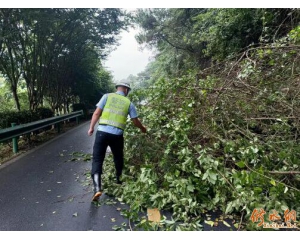 连日来,修水辖区大风大雨天气居多,导致多处道路两侧树木倒伏、山体滑坡、路面积水,出现不同程度交通安全隐患,修水交警冒雨坚...