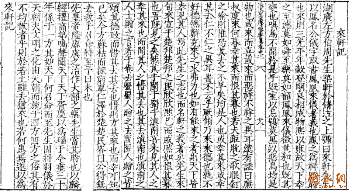 张邦奇《张文定文集》中也有一篇《来轩记》。