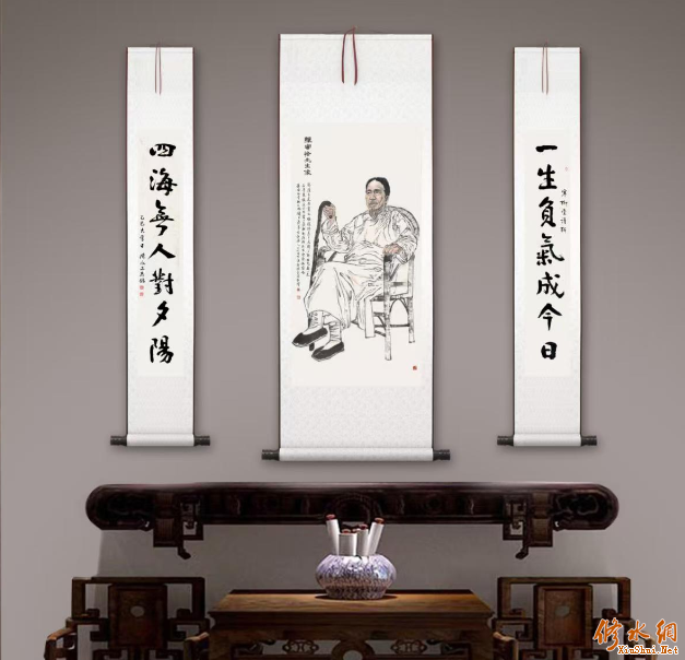 客厅兼卧室同样逼仄,靠窗有张书桌,对面靠墙有张窄窄的木板床,薄被上方的墙面悬着一副对联:“为文有陈寅恪气,所居在黄山谷乡。”